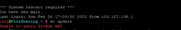 root@... : wo update Unable to query GitHub API