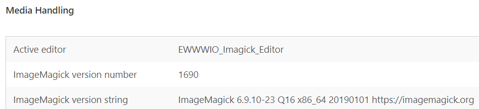 nsgoyat I use EWWW to optimize the images and this is what Media Handling section from Site Health info looks like: